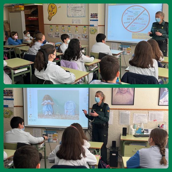 Las charlas en 5º y 6º de Primaria han girado en torno a la seguridad en internet y redes sociales, también han impartido en estos cursos otras charlas sobre acoso escolar. Los alumnos de 1ºESO recibieron una charla sobre los beneficios y peligros de internet. Por su parte, el alumnado de 2ºESO ha asistido a una charla sobre el acoso escolar, tema de gran transcendencia entre los adolescentes ya que causa muchos sentimientos negativos que no son capaces de gestionarlo.